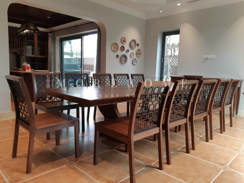 Việc lắp đặt bộ bàn ăn 12 ghế gỗ tự nhiên có thiết kế thoải mái, tiện lợi sử dụng sẽ giúp tô điểm trang trí không gian thẩm mỹ.