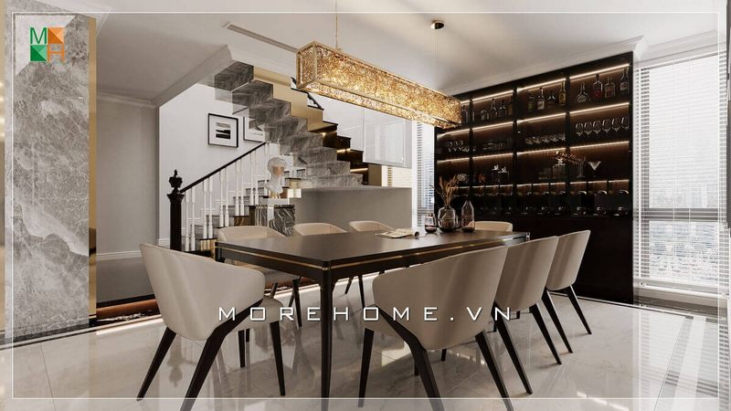 Thi công nội thất phòng ăn chung cư thiết kế hợp lí khoa học sử dụng tiện nghi thoải mái nhất cho gia chủ khi sử dụng hằng ngày