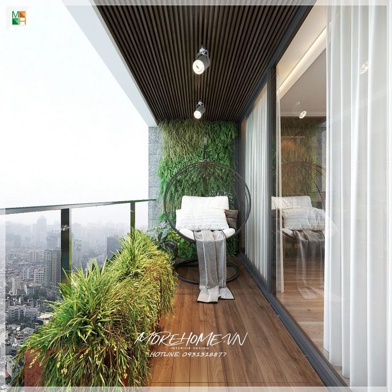 Chủ nhà đã trang trí logia chung cư bằng chiếc ghế trứng ở ngoài logia, giúp nó có vẻ cổ điển hơn và cũng thay thế ghế đọc sách, tạo thành một sản phẩm 2 trong 1 phù hợp với mẫu ban công nhỏ trong chung cư.