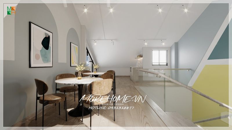 Sử dụng không gian hợp lý với thiết kế nội thất cẩn thận, đã tạo ra một không gian nhà ăn văn phòng phù hợp với nhu cầu của nhân viên và đem lại sự tiện lợi cho họ trong quá trình ăn uống nghỉ ngơi.