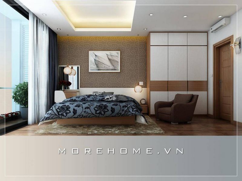 Mẫu tủ quần áo gỗ công nghiệp trắng kết hợp với màu nâu góp phần tạo nên một không gian phòng ngủ tinh tế và sang trọng.